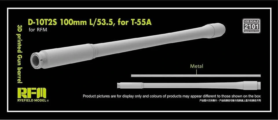 RFM 3D printed Gun barrel D-10T2S 100mm L/53.5 for T-55A, for RFM - kovové dělo + 3Dprint 1/35
