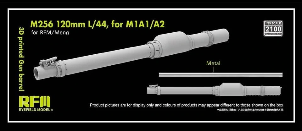 RFM 3D printed Gun barrel M256 120mm L/44 for M1A1/M1A2, for RFM/Meng - kovové dělo + 3Dprint 1/35