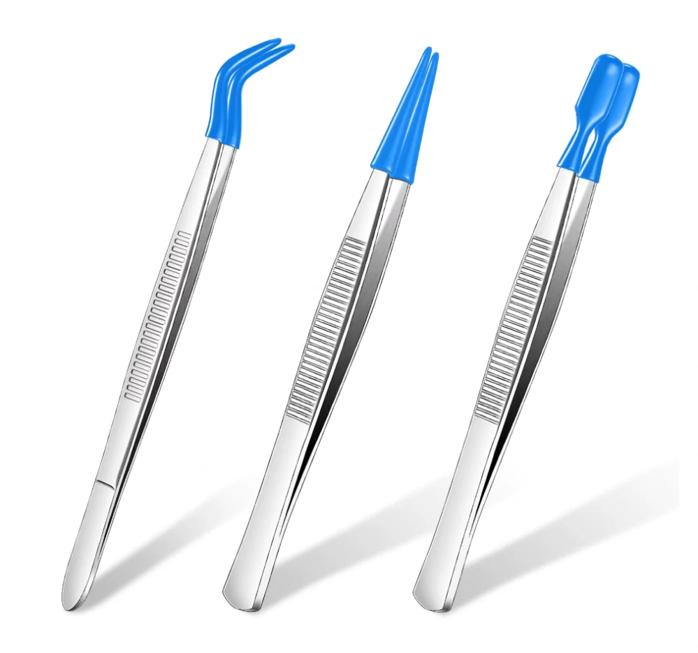 Set 3 velmi praktických protiskluzových pinzet s pogumovanýcmi hroty pro bezpečnou manipulaci splastikovými díly pro zabránění vyklouznutí nebo poškození dílku oproti pinzetám s kovovými hroty.