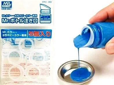 Praktický modelářský nálevkový nástavec (spout) od japonského výrobce Gunze Sangyo, určený pro přesné a čisté nalévání barev z lahviček řady Mr. Color a Aqueous Hobby Color.
